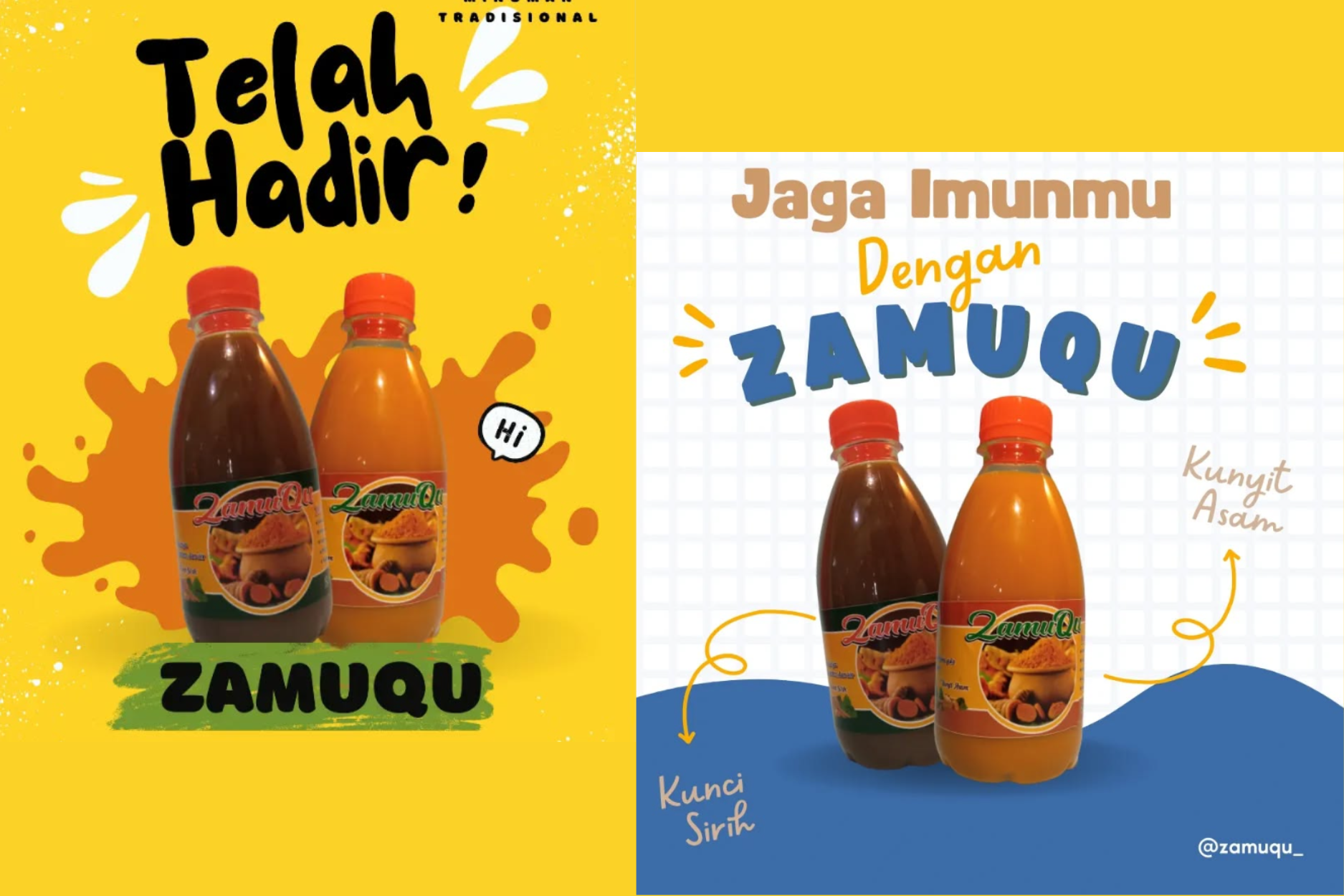 Zamu Qu adalah minuman herbal alami yang diformulasikan dari bahan-bahan tradisional pilihan seperti jahe, kunyit, dan rempah-rempah lainnya. Produk ini dikenal karena manfaatnya dalam membantu menjaga daya tahan tubuh, meredakan pegal linu, serta meningkatkan energi dan vitalitas. Dikemas secara praktis, Zamu Qu cocok dikonsumsi sehari-hari untuk mendukung gaya hidup sehat dan aktif.